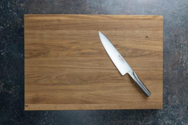 Skærebrætter af træ er både praktiske og skånsomme mod kniven. Globals træskærebrætter er fremstillet i sølveg, som er en fibertæt træsort, der passer rigtigt godt som underlag. Fordelen ved træ frem for plast er, at skærebrættet holder væsentligt længere. Dels bliver det ikke i lige så høj grad beskadiget af kniven. Og det kan slibes ned, når overfladen er blevet slidt. Ulempen er, at materialet ikke er sterilt. Det betyder, at du skal være omhyggelig med at vaske og tørre skærebrættet for at holde bakterier væk. Det kan også være nødvendigt at oliere brættet af og til for at forhindre, at træet revner.