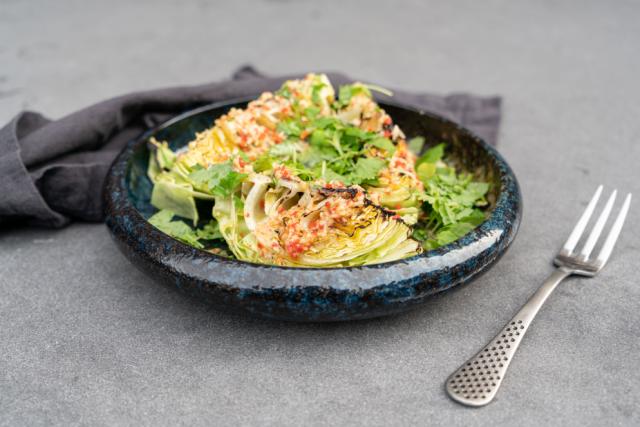 Normalt serveres kål i strimler eller hakket i salat, men faktum er at det også er utrolig lækkert at grille kål. Gør som Øyvind Bøe Dalely og varm kålen med fx chili, hvidløg, ingefær og koriander. Retten fungerer udmærket både i sig selv og som grilltilbehør.
