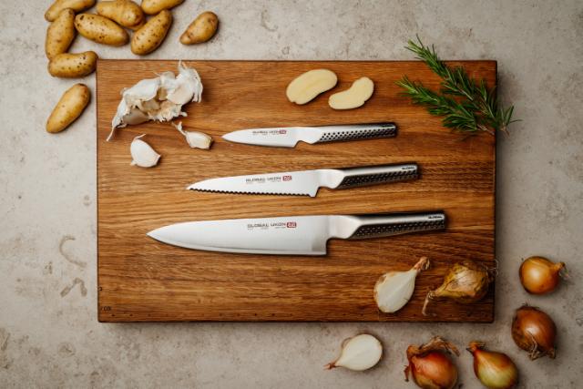 Santoku, universalkniv eller grøntsagshakker – hvad vælger du? Udforsk hele sortimentet i Globals Ukon-serie, og find din nye favoritkniv.