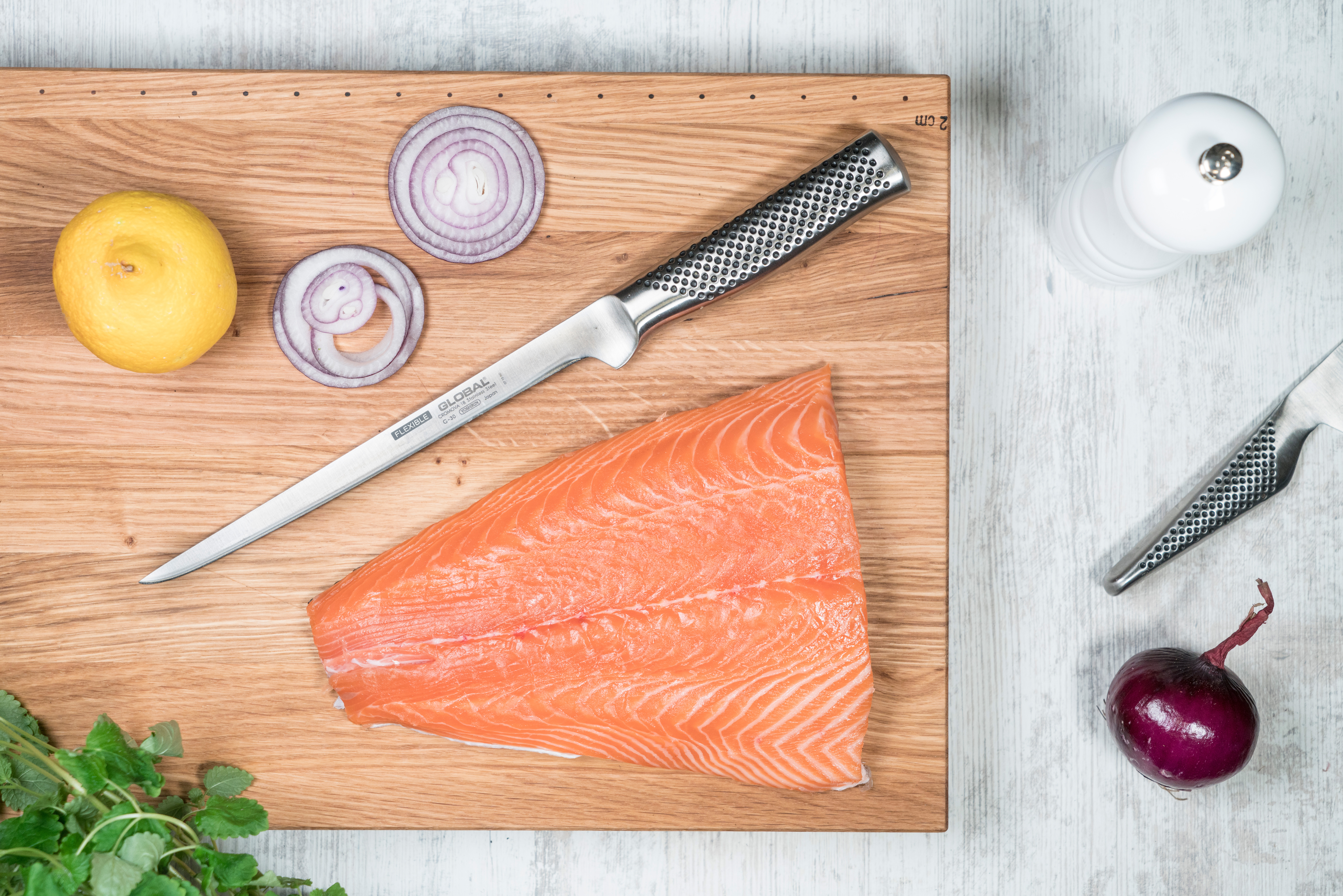 Vil du have mere at vide om filetkniven? I Globals knivguide viser Globals ambassadør Rebecca Siri, hvordan du bruger kniven på den rigtige måde, og hun gennemgår, hvilke råvarer den egner sig til.